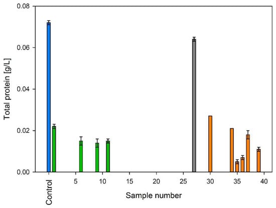 9] was used. The experiments were performed in 50 mL centrifuge tubes in duplicates and the bentonites were added at a rate of 1 g/L. The tubes were placed on a shaker table for 10 h overnight and then clarified by centrifugation. The residual protein concentration after bentonite removal was analyzed using the colorimetric assay according to Bradford (1976) [