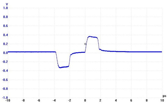 The pulse generator was constructed and designated by H. F. Power Ltd. (Auckland, New Zealand). This generator has the ability to provide a high voltage of up to 30 kV, as well as square bipolar pulses (Figure 2) with a duration of 1.5 μs and frequencies up to 1 kHz. The application of bipolar pulses can minimize the ohmic heating and cause further stress on the microbial cell wall, which enhances the electrical breakdown (cell death). Further, better energy utilization, reduction in the deposition of solids on the electrode surface, food electrolysis and corrosion was minimized when using the square bipolar pulse waveform [24].