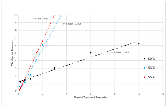The treatment temperature was always maintained below the lethal temperature of the microorganism under investigation, which is illustrated in Figure 7.