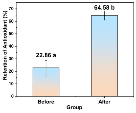 The comparison of antioxidants of MGS before and after embedding in acidic conditions,the letter a and b represents a significant difference between the two groups.