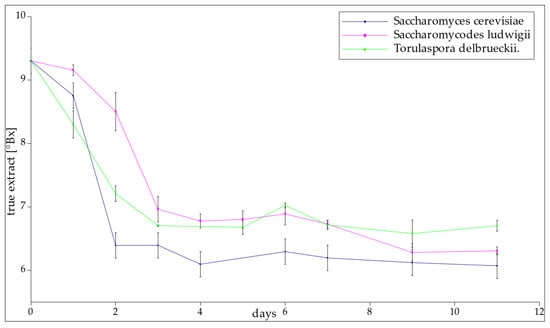 Jackowski, M.; Czepiela, W.; Hampf, L.; Żuczkowski, W.; Dymkowski, T.; Trusek, A. Comparison of Two Commercially Available Strains, Saccharomycodes ludwigii and Torulaspora delbrueckii, for the Production of Low-Alcohol Beer. Beverages 2023, 9, 66. https://doi.org/10.3390/beverages9030066