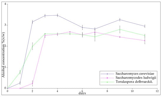- Vejarano, R. Saccharomycodes ludwigii, control and potential uses in winemaking processes. Fermentation 2018, 4, 71. [Google Scholar] [CrossRef]