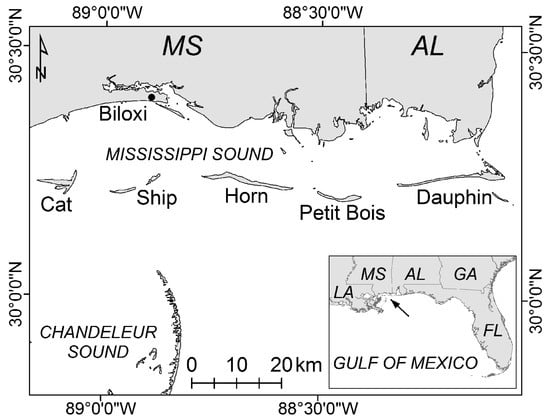 Carter, G.A.; Anderson, C.P.; Lucas, K.L.; Hopper, N.L. Land Cover Data for the Mississippi–Alabama Barrier Islands, 2010–2011. Data 2016, 1, 16. https://doi.org/10.3390/data1030016