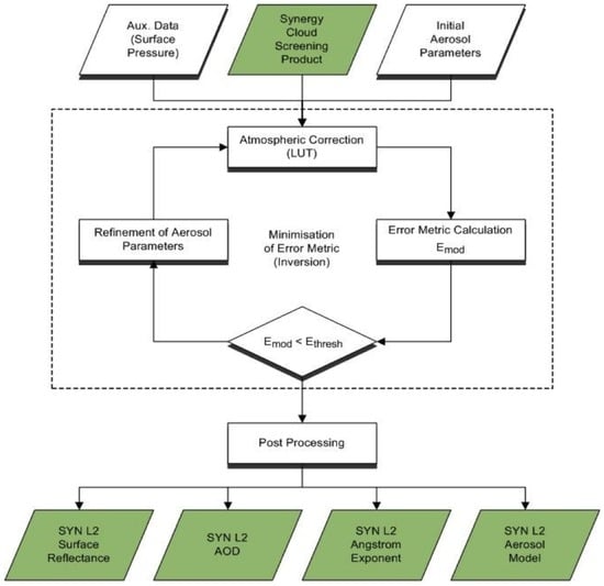 - Quast, R. MERIS/AATSR Synergy Algorithms for Cloud Screening, Aerosol Retrieval, and Atmospheric Correction, Detail Processing Model (DPM). REF: SYN-BC-DPM. 2010, p. 39. Available online: www.brockmann-consult.de/beam-wiki/download/.../synergy-land_aerosol-atbd.pdf (accessed on 11 October 2016).