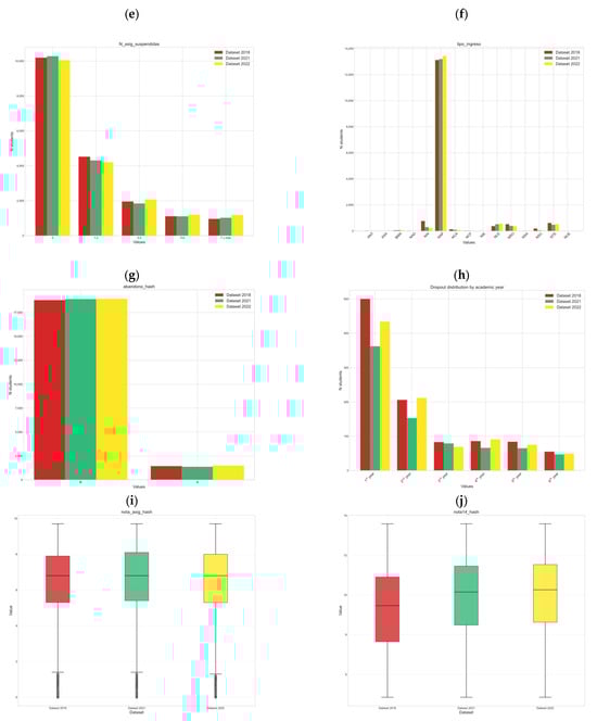 Student dropout in higher education remains a significant concern for universities worldwide, with substantial academic, economic, and social implications for both individuals and institutions []. Recent research [,,] has highlighted the importance of understanding the diverse factors that contribute to students discontinuing their studies, including academic performance, socio-demographic background, and patterns of engagement with university resources. Large, multi-year datasets from a single institution that integrate information from multiple sources are essential for advancing research in this area and developing effective interventions [].