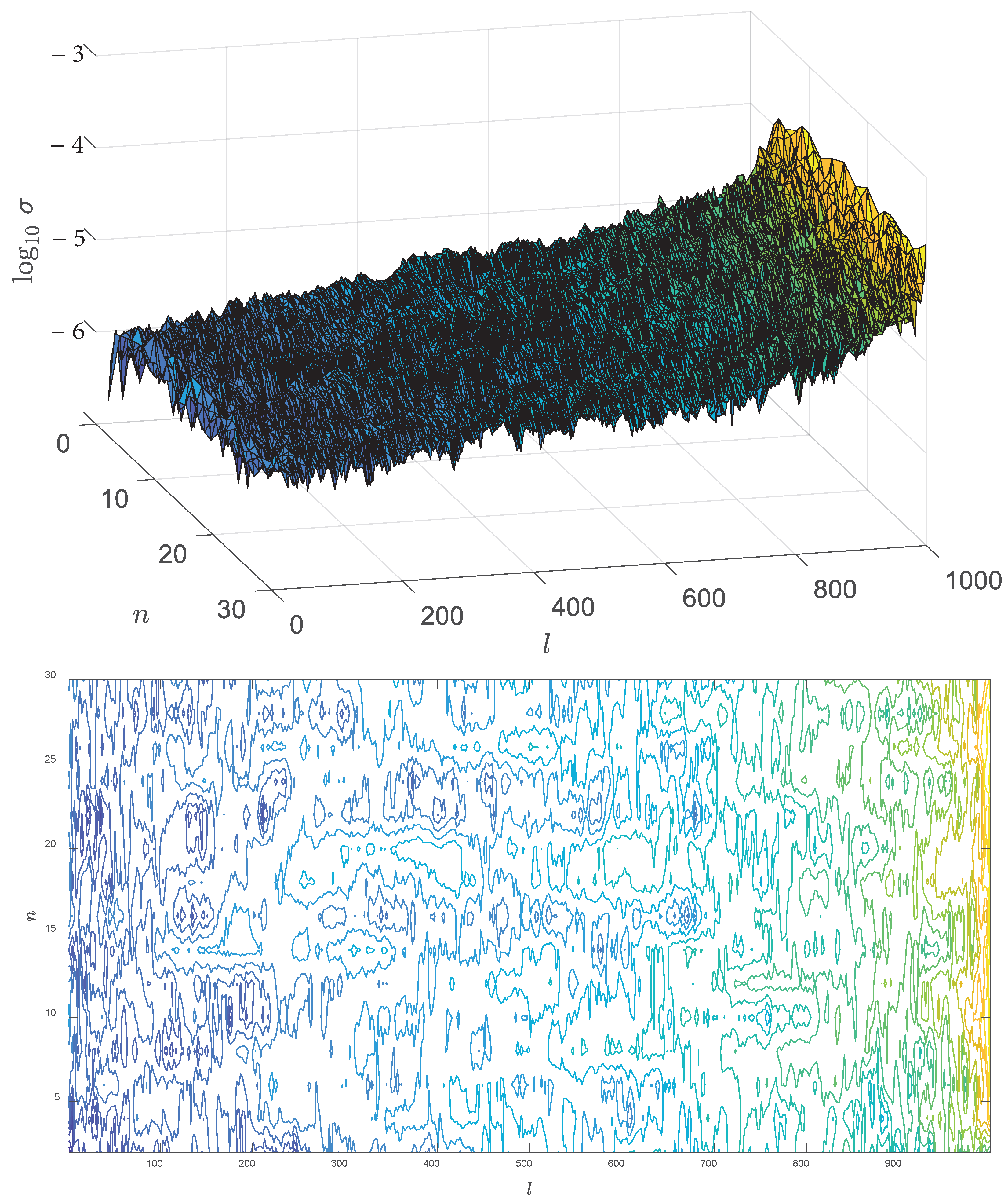 - For , ref. [19] data are ascending with n, while our data indicate the opposite;