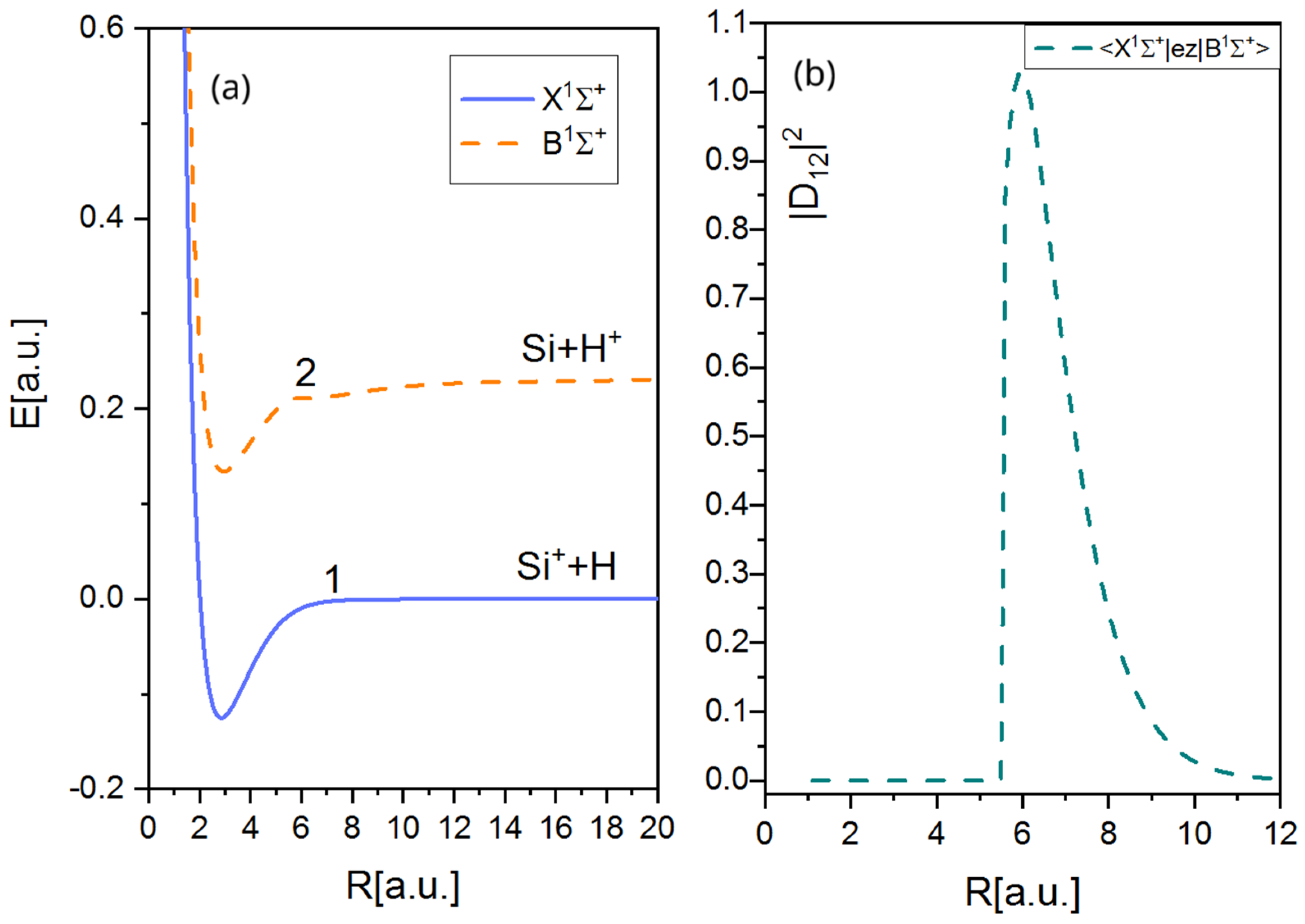 - Stancil, P.C.; Kirby, K.; Sannigrahi, A.B.; Buenker, R.J.; Hirsch, G.; Gu, J.-P. The Photodissociation of SiH+ in Interstellar Clouds and Stellar Atmospheres. Astrophys. J. 1997, 486, 574. [Google Scholar] [CrossRef]