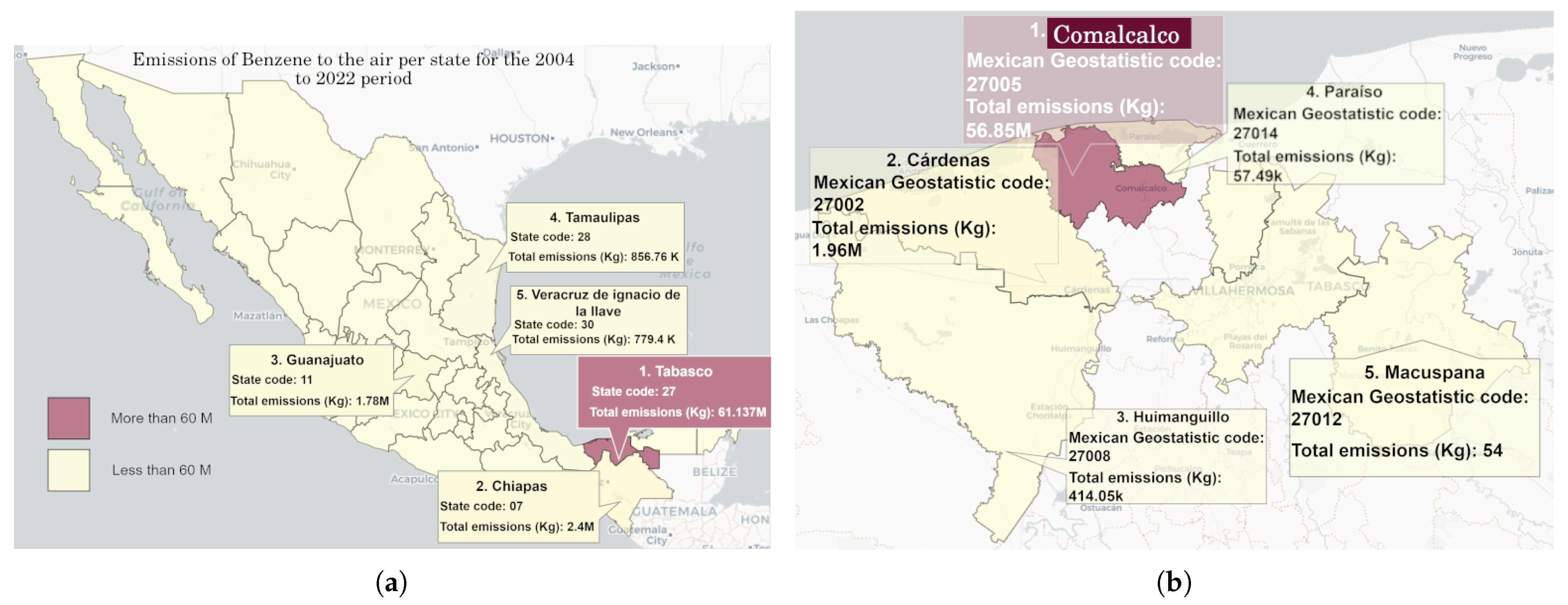 Reyes-Anastacio, H.G.; Lopez-Arevalo, I.; Gonzalez-Compean, J.L.; Crespo-Sanchez, M.; Calderon, J.; Aguirre-Meneses, H. A Mexican Enhanced Dataset of Pollutant Releases and Transfers (2004 to 2022) with IARC Cancer Classifications. Data 2025, 10, 191. https://doi.org/10.3390/data10110191