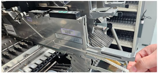 Figure 1 provides an overview of an SMT pick-and-place machine. Reels containing components are loaded into the feeder tray section (visible in the lower area of the image). The pick-and-place machine uses robotic arms to retrieve components from the feeder section and place them accurately onto PCBs. For the machine to function effectively, each reel must be positioned correctly in its designated feeder slot.