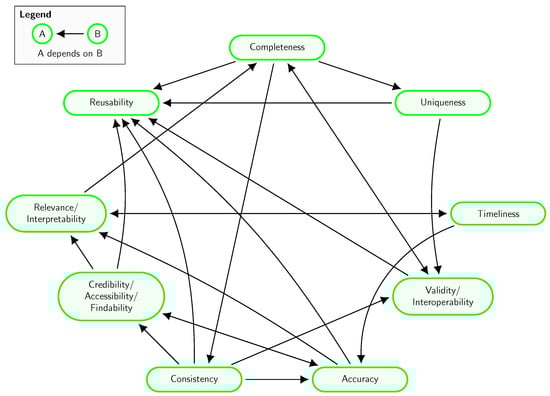 - Askham, N.; Cook, D.; Doyle, M.; Fereday, H.; Gibson, M.; Landbeck, U.; Lee, R.; Maynard, C.; Palmer, G.; Schwarzenbach, J. The Six Primary Dimensions for Data Quality Assessment; Data Management Association: Bristol, UK, 2013. [Google Scholar]