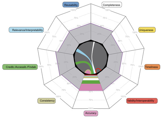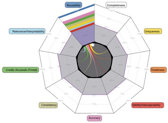 To assess the data quality in organizations, maturity models that deal with the data quality management (DQM) are available. These maturity models basically classify organizations into different maturity levels according to their currently applied DQM practices [35]. Other maturity models try to support the build process of corporate DQM or operate on an enterprise-wide DQM with different measures to assess the DQM of an enterprise [36,37]. These maturity models often use maturity levels and different criteria to assess the organization’s capabilities for DQM, whereby the criteria either relate to the organization, which is going to be assessed, or to data management practices [38,39]. To apply a maturity model and determine the level of maturity, open-source tools are available for specific maturity models that enable organizations to assess their level of maturity with little time investments [40].