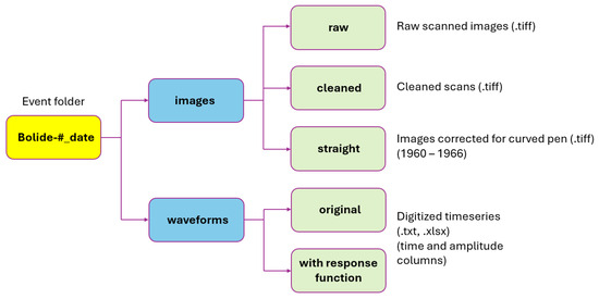 Folder structure within the repository. There are ten event folders, each corresponding to a distinct bolide event (also indicated with “#” in the event folder, also see Table 2).