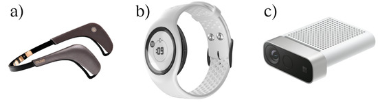 (a) Muse 2. (b) Empatica EmbracePlus. (c) Azure Kinect.