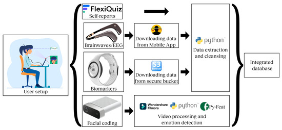 Understanding the relationship between multimodal attributes—such as neural, physiological, and behavioral signals—and learner behaviors including emotional responses, cognitive load, and engagement remains a key challenge in human–computer interaction research for education. In particular, prior studies have emphasized the relevance of academic emotions and their strong connection to student engagement in learning environments [11], as well as the potential of wearable technologies for detecting engagement levels in real-time [12]. Recent developments in digital education have further underscored the need for objective tools capable of evaluating these dimensions, especially in contexts where direct teacher presence is not available. In this regard, biometric sensors—such as EEG headbands, physiological wristbands, and facial recognition cameras—have been employed to capture affective and attentional states during remote or hybrid learning activities [13].