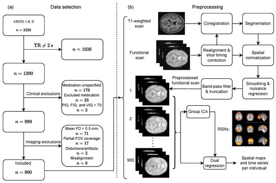 - Di Martino, A.; O’connor, D.; Chen, B.; Alaerts, K.; Anderson, J.S.; Assaf, M.; Balsters, J.H.; Baxter, L.; Beggiato, A.; Bernaerts, S.; et al. Enhancing studies of the connectome in autism using the autism brain imaging data exchange II. Sci. Data 2017, 4, 170010. [Google Scholar] [CrossRef] [PubMed]