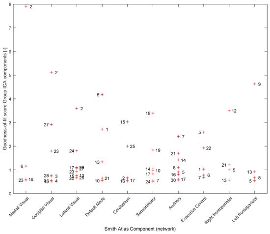 - Beckmann, C.F.; Smith, S.M. Probabilistic independent component analysis for functional magnetic resonance imaging. IEEE Trans. Med. Imaging 2004, 23, 137–152. [Google Scholar] [CrossRef]