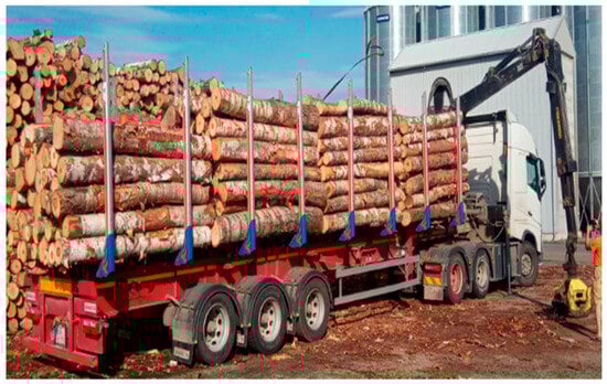 As mentioned above, the demand for transportation in the agricultural sector depends largely on seasonal factors. The company has a certain number of trucks and semi-trailers that are used in certain months to transport agricultural products, namely grain. Consequently, the drivers of the vehicles are not fully occupied throughout the year. By renting a special semi-trailer for transporting forest products (Figure 5), it would be possible to expand or partially reorient the business to the transportation of timber. Such a special semi-trailer would allow the agricultural transport company to use its drivers and vehicles more effectively by using them for the transportation of both agricultural and forestry products.