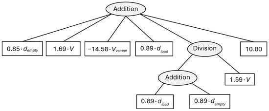 An example of an analytical extract encoded in a tree-like data structure is shown in Figure 9. The leaf nodes of a tree data structure represent specific input variables multiplied by constant coefficients, and the internal nodes represent binary operations on their values or the results of other such operations.