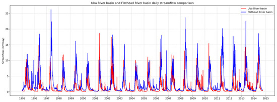 Daily streamflow comparison of Uba River basin and Flathead River basin.