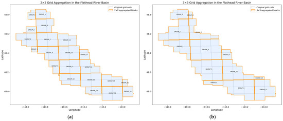 - Binning cells into coarser 2 × 2 and 3 × 3 aggregations decreases model performance modestly, with losses of 2–4% NSE. Although 2 × 2 grids might be computational workarounds, 3 × 3 aggregations should be used for coarse estimates in resource-scarce circumstances.