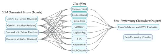 The input for our ensemble classifiers was not the raw text but a set of features derived from the four LLM-generated scores (Gemini-Initial, Gemini-Revision, Deepseek-Initial, Deepseek-Revision). For each trait, the following features were engineered: