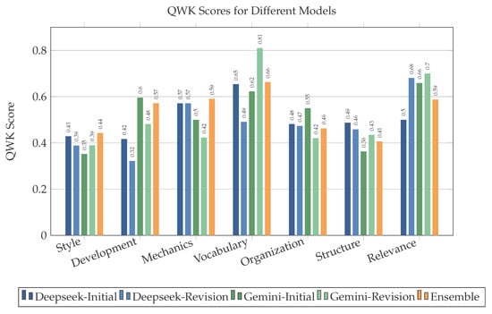 - Afrizal Doewes, A.; Kurdhi, N.A.; Saxena, A. Evaluating Quadratic Weighted Kappa as the Standard Performance Metric for Automated Essay Scoring. In Proceedings of the 16th International Conference on Educational Data Mining, Bengaluru, India, 11–14 July 2023; pp. 103–113. [Google Scholar]