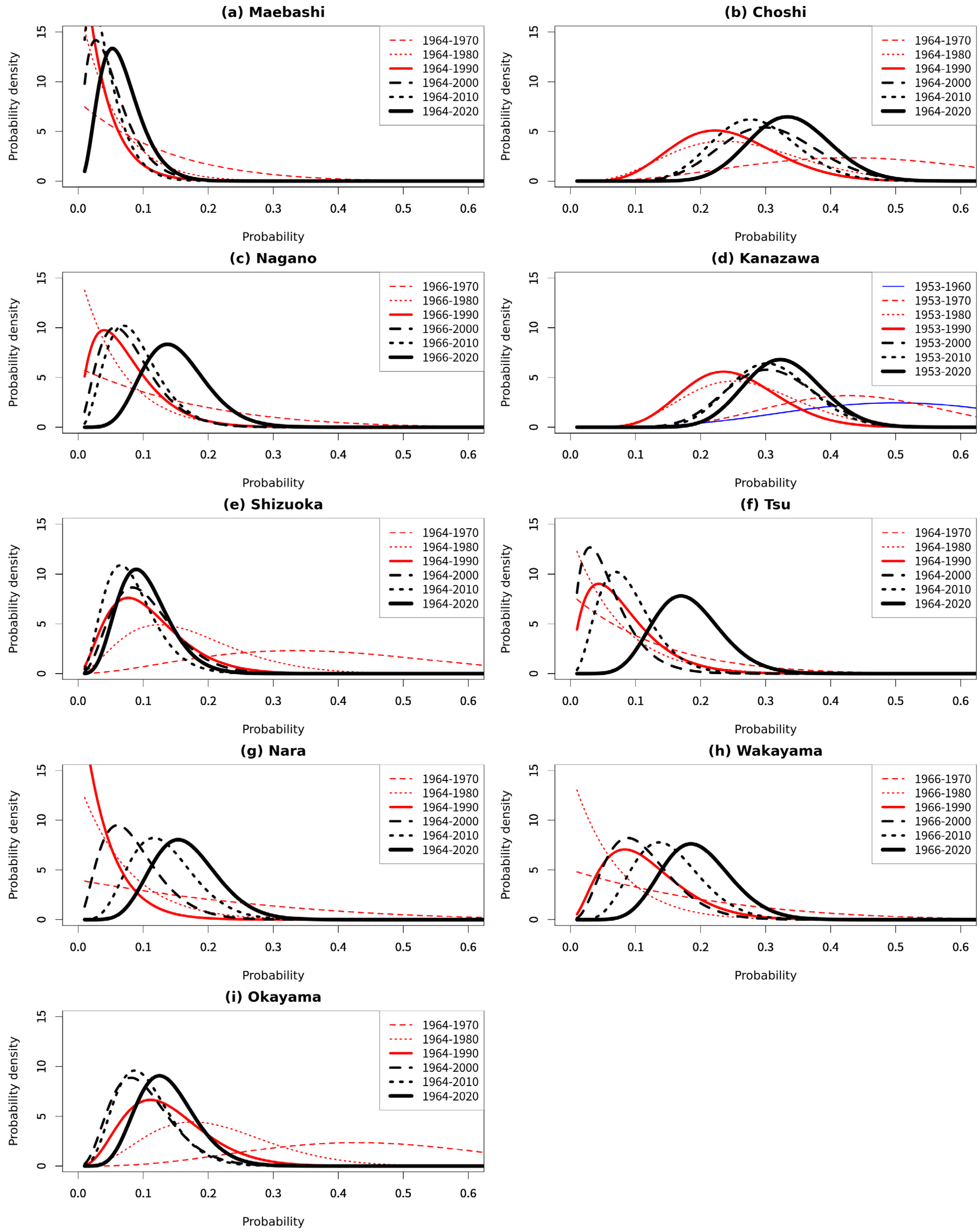 | Maebashi | 1964–1970 | Be(1, 8) | 0.111 | 0.01 | Tsu | 1964–1970 | Be(1, 8) | 0.111 | 0.01 |