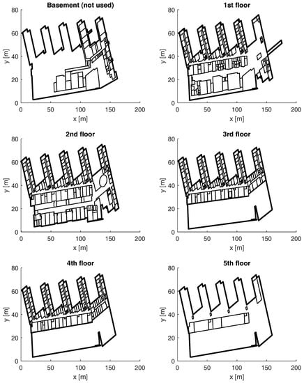 Floor maps of the 6-floor university building in which the measurements were recorded over five floors.