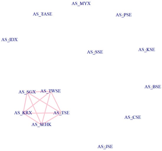 Econometric studies on market integration in Asia have either used the weekly or the daily closing prices. In the current study, the weighted networks are built from the daily prices of the market indices at closing times. The advantage of using weekly datasets for such an analysis is that they can handle the time asynchronous nature of different capital markets. However, by utilizing the daily dataset, one can feasibly capture the linkages that are the outcomes of swift information transmission activities in cross-market scenarios. Both the long-run and short-run linkage dynamics can hence be captured, whereas in weekly data analysis, the short-run linkage dynamics are neglected. In today’s international financial systems, wherein IT-based online trading, payment and settlement systems are in place in all cross-geographical markets, the capturing of higher frequency data, such as daily data, would provide better insights about cross-market linkage patterns [56,57]. Thus, using daily data, the cross-market linkage analysis can be performed better at a micro-level than that of weekly data. All the Asian market indices considered in the present study have their trading hours operating on the same day. Many of them have overlapping trading hours, so simultaneous information transmission is also possible in those markets, and that would get reflected in their network structures. The study by Leonidas Sandoval Junior [58] has employed Eigen vector e2 (associated with the second largest Eigen value) to assess whether the markets operating in non-synchronous time-frames have significant alterations in their equity networks. The study highlighted that the equity networks are robust enough to accommodate lagging or leading time-frames of the market indices. The study also contends that there is no statistically significant difference evident in network structures obtained from the closing prices datasets and the lagged (or leading) datasets.
