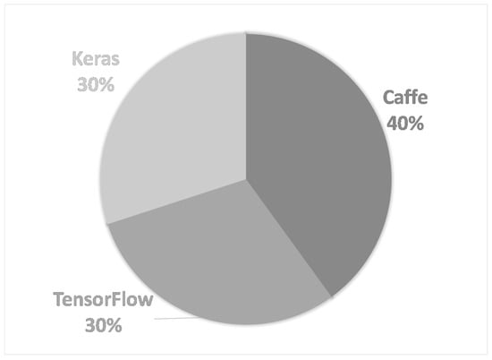 Distribution of deep learning software frameworks used by studies.
