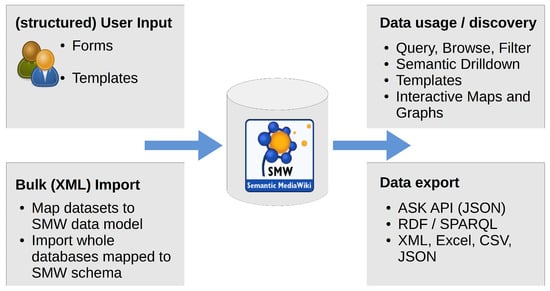 - SemanticMediawiki Contributors. Semantic MediaWiki—Free and Open-Source Extension to MediaWiki, 2018. Available online: https://semantic-mediawiki.org/ (accessed on 23 October 2018).