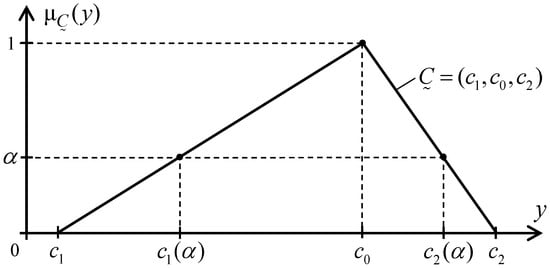 The triangular fuzzy numbers and can be characterized by their own MFs and with corresponding parameters and . The horizontal and vertical , models of the triangular fuzzy numbers can be represented by the expressions (4)–(7) [,,,,,,,]:
