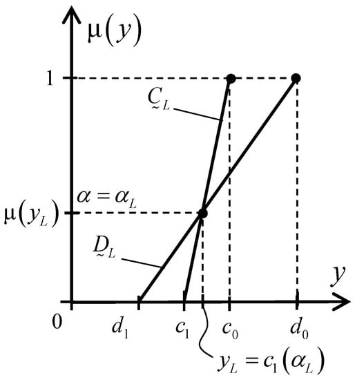 One of the efficient approaches for the synthesis of the resulting MFs’ analytic models is using -cuts [,,], in particular, for construction of the horizontal (inverse) and vertical (direct) models of the resulting membership functions. However, in some cases, the necessity to form such resulting models is time consuming and leads to the decrease in data processing speed and lower quality of the real-time control and decision-making processes [,,,].