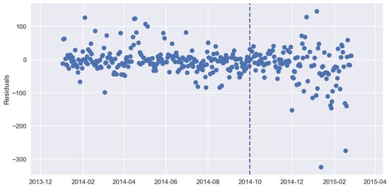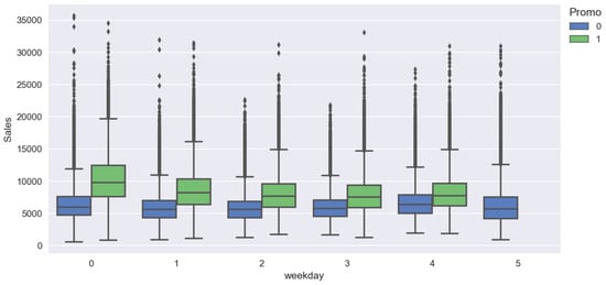Sales prediction is rather a regression problem than a time series problem. Practice shows that the use of regression approaches can often give us better results compared to time series methods. Machine-learning algorithms make it possible to find patterns in the time series. We can find complicated patterns in the sales dynamics, using supervised machine-learning methods. Some of the most popular are tree-based machine-learning algorithms [27], e.g., Random Forest [28], Gradiend Boosting Machine [29,30]. One of the main assumptions of regression methods is that the patterns in the past data will be repeated in future. In [31], we studied linear models, machine learning, and probabilistic models for time series modeling. For probabilistic modeling, we considered the use of copulas and Bayesian inference approaches. In [32], we studied the logistic regression in the problem of detecting manufacturing failures. For logistic regression, we considered a generalized linear model, machine learning and Bayesian models. In [33], we studied stacking approaches for time series forecasting and logistic regression with highly imbalanced data. In the sales data, we can observe several types of patterns and effects. They are: trend, seasonality, autocorrelation, patterns caused by the impact of such external factors as promo, pricing, competitors’ behavior. We also observe noise in the sales. Noise is caused by the factors which are not included into our consideration. In the sales data, we can also observe extreme values—outliers. If we need to perform risk assessment, we should to take into account noise and extreme values. Outliers can be caused by some specific factors, e.g., promo events, price reduction, weather conditions, etc. If these specific events are repeated periodically, we can add a new feature which will indicate these special events and describe the extreme values of the target variable.