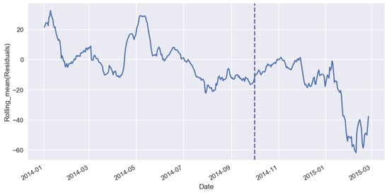 Figure 7 shows forecast residuals for sales time series, Figure 8 shows the rolling mean of residuals, Figure 9 shows the standard deviation of forecast residuals.