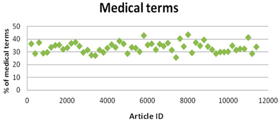 To demonstrate that an author is self-confident, it is essential to use the appropriate terms (in our case, the medical terms), and to avoid jargon, because it is the secret language of the scientific field. It excludes the intelligent, otherwise well-informed, reader, and speaks only to the initiated. The statistical analysis of our corpus showed that the articles marked as showing non-confidence had either below 25% of medical terminology or above 40%.