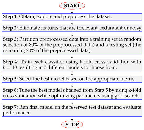 Here, we discuss the methodology used to produce our predictive model of student college commitment decisions. The steps implemented to identify the final optimized model are illustrated in a flow chart given in Figure 2.