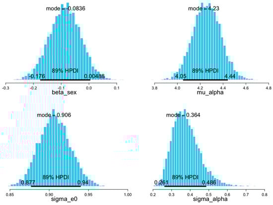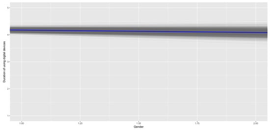 Figure 15 explains the correlation between sex and the usage of technological devices based on the slope coefficient beta_sex. The sex and usage of digital devices show low correlation, but female students demonstrate a slightly higher level of usage than their male counterparts because the value of the coefficient is smaller than zero.