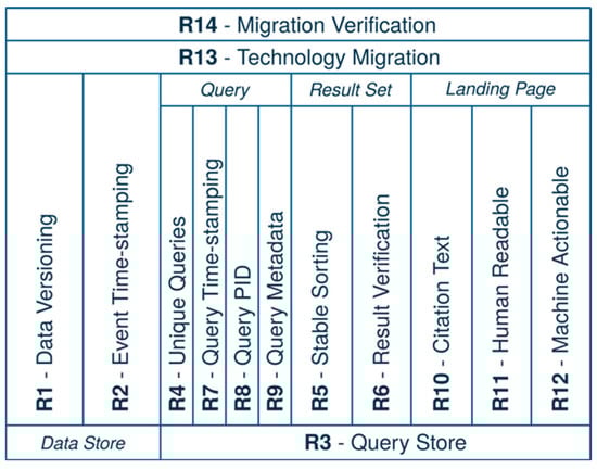 - R13—Technology Migration: When data are migrated to a new infrastructure environment (e.g., new database system), ensuring the migration of queries and associated fixity information.