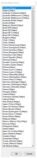 - R Core Team. R: A Language and Environment for Statistical Computing. Available online: https://www.R-project.org/ (accessed on 2 August 2019).