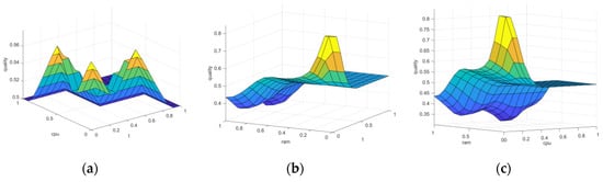 The evaluation of the quality of operation was performed with respect to the partial quality indicators: —real time spent on the experiment, ns; —the microprocessor operating time spent in user code during the experiment, ms; —the increase in the resident set size noted at the end of the experiment (including heap, code segment, and stack), bytes. When conducting the experiment, the partial indicators were normalized with respect to their maximum values in the experiment and took their values in the segment [0; 1].