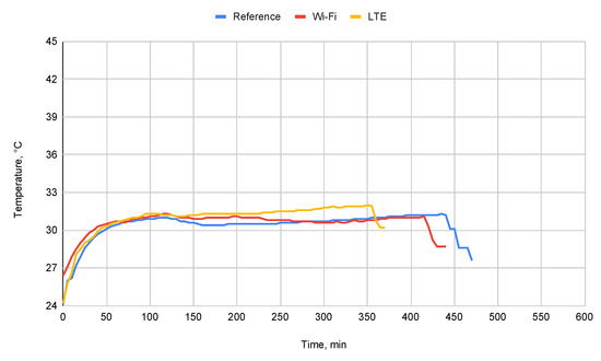 Interestingly, the cellular and Wi-Fi usage has close to no difference in battery temperature change, see Figure 7. Because of the LTE utilization’s little impact, the user can switch to from Wi-Fi to LTE safely unless the battery life impact is crucial for them.