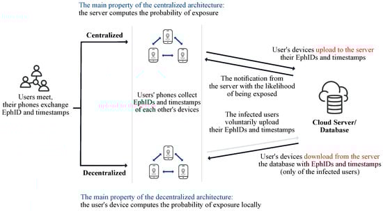 - Ethical domain—refers to challenges in adopting or imposing a new mobile application due to ethical constraints such as the GDPR regulations in Europe. For example, as emphasized above, decentralized semi-automated applications cannot serve as a standalone solution to respond to virus exposure, as human actions are further needed (from governments, healthcare personnel, citizens, etc.) for efficient and robust solutions. However, a decentralized approach promises to benefit best in synchronization with preventive measures, a well developed public healthcare system, and thorough compliance with the government recommendations.