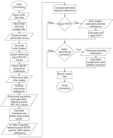 - Peddle, D.R.; White, H.P.; Soffer, R.J.; Miller, J.R.; Ledrew, E.F. Reflectance processing of remote sensing spectroradiometer data. Comput. Geosci. 2001, 27, 203–213. [Google Scholar] [CrossRef]
