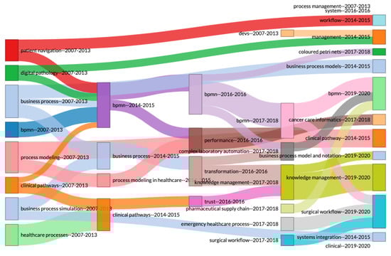The primary sample of the study includes the publications listed in the database Web of Science (WOS) of Clarivate Analytics, which were published between 1 January 2004 and 10 June 2020 and that contained the search strings. The year 2004 was selected as the starting time point, as it is the year in which the BPMN was created by the Business Process Management Initiative (BPMI).