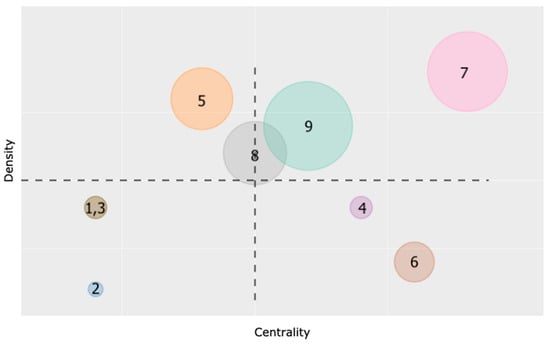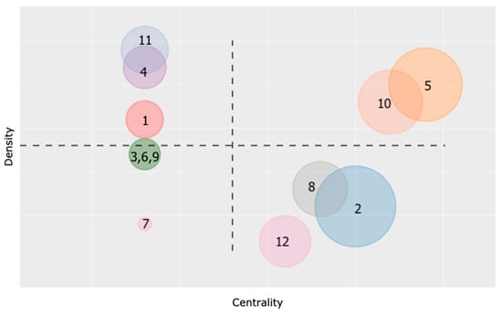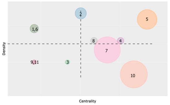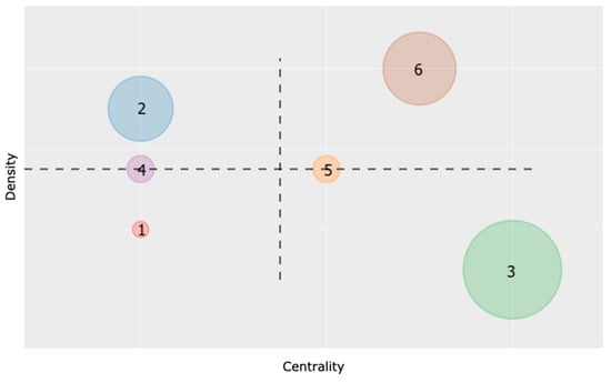 We continued the analysis in greater depth with institutions, and we analyzed these affiliations with the Keywords Plus. We show the resulting layout of the Keywords Plus in Table 4. This table lists Keywords Plus depending on the authors’ affiliations and the number of relevant documents. Due to the large number of combinations, these values are the most numerous.