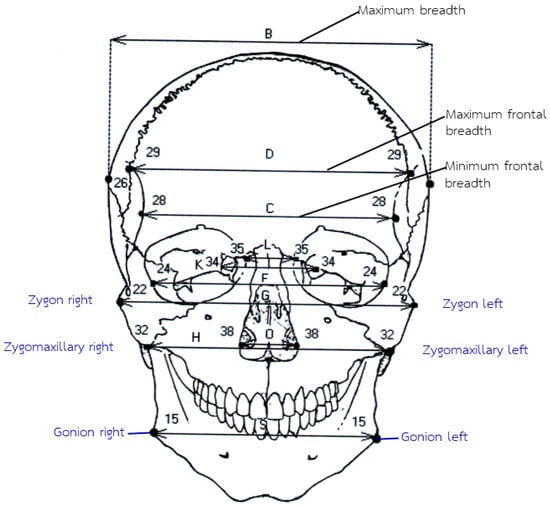 - Tuamsuk, P.; Nonsrijun, N.; Sirisin, J. Craniometry study of 3D-human skulls in Srinagarind Hospital, Khon Kaen University, Thailand. In Proceedings of the 37th Annual Conference of the Anatomy Association of Thailand, The Cultural Center of Lower Northern Region, Phitsanulok, Thailand, 7–9 May 2014. [Google Scholar]