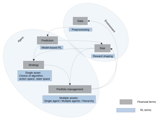 We show an overview of the above-mentioned financial concepts, the relations between them, and their RL correspondents in Figure 4.