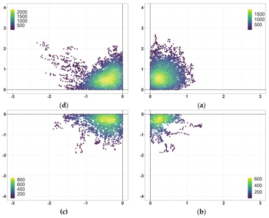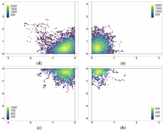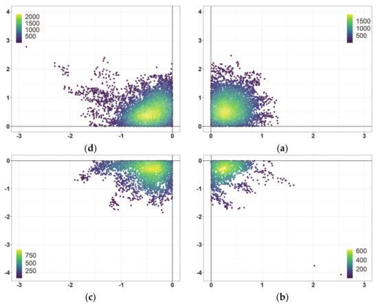 26. Kremer, L.P.M. Ggpointdensity: A Cross between a 2D Density Plot and a Scatter Plot. 2019. Available online: https://CRAN.R-project.org/package=ggpointdensity (accessed on 22 March 2020).