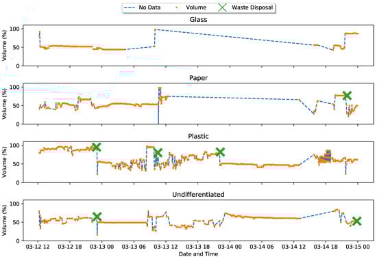 A typical dataset for image based approaches would consist of labeled waste bin images. More precisely, at least two labels would be necessary: (1) the position of the waste bin (for detection algorithms) and (2) the fill level (for waste-level classification). In contrast, a typical dataset for distance based approaches would consist of time series measurements of the distances measured by the sensor and the corresponding volume represented. Since the fill levels are obtained directly from the measurements, it is not mandatory to have labels with the waste levels.